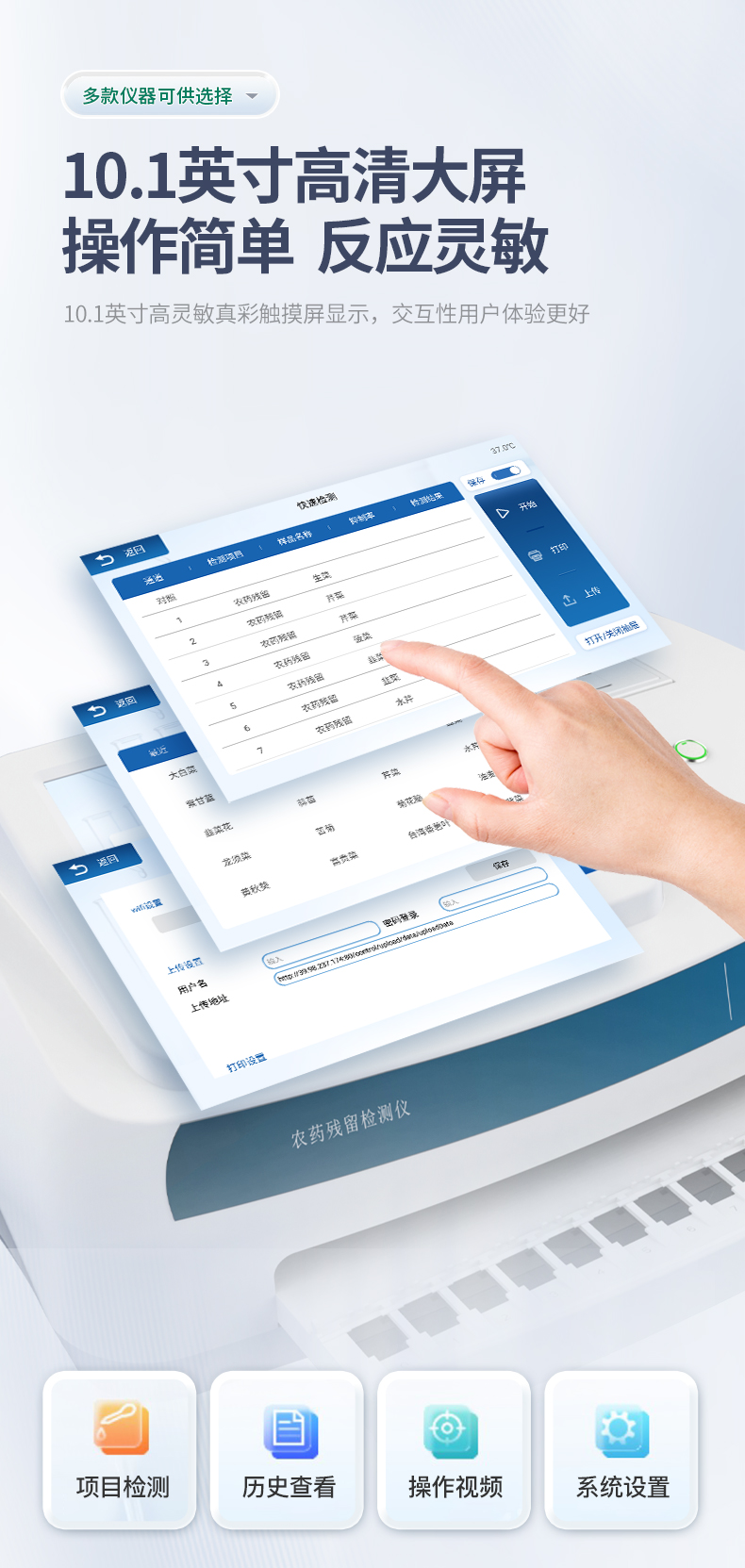 產品簡介:該儀器為三體儀器新研發一款農殘快速檢測儀,采用國標速測卡,使檢測速度更快,操作更加簡便。檢測標準:依據國家標準方法(GB/T5009.199-2003)以及世界衛生組織WHO、世界糧農組織FAO殘留農藥檢測標準、世界環境保護局EPA參照攝入量等要求來設計。