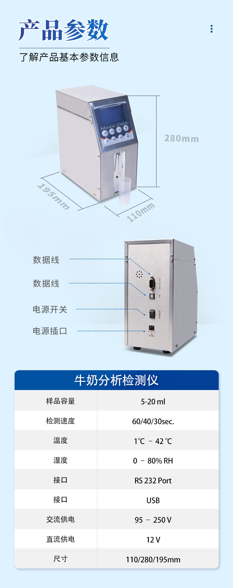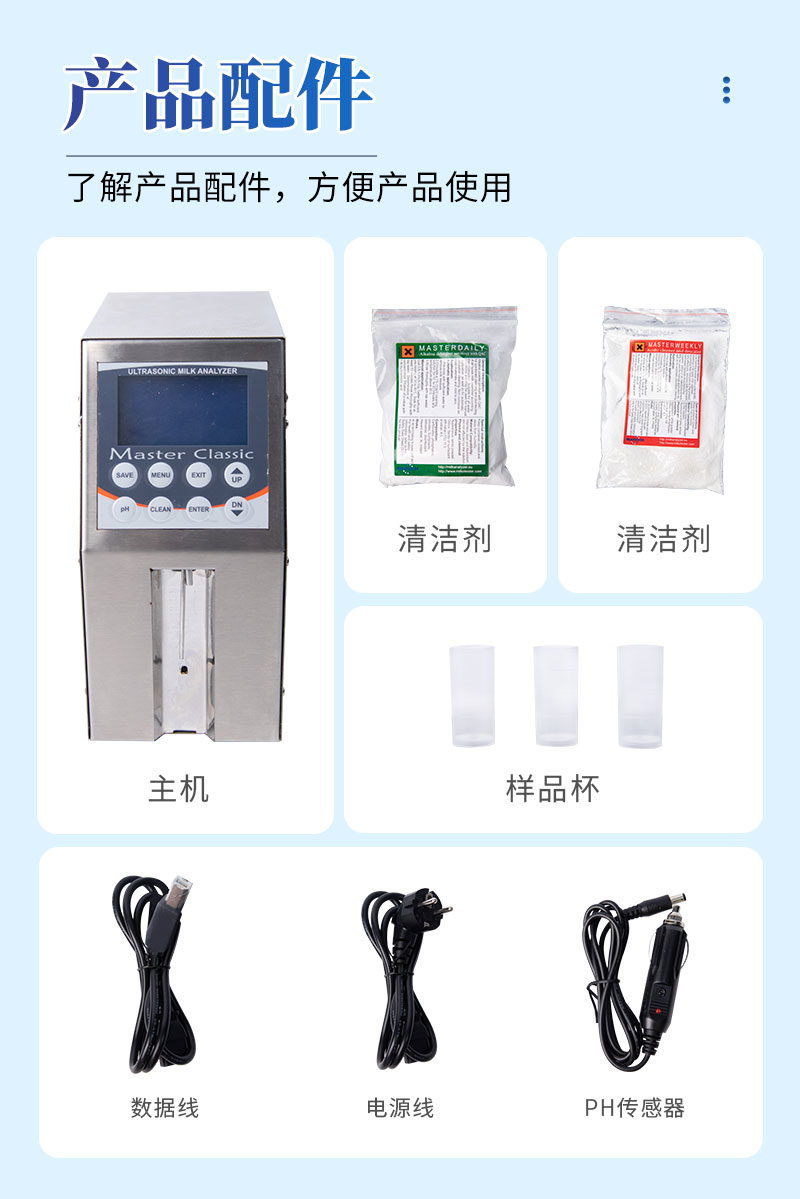 1、MILK CLASSIC是一種高質量可以測量9種牛奶參數的儀器。