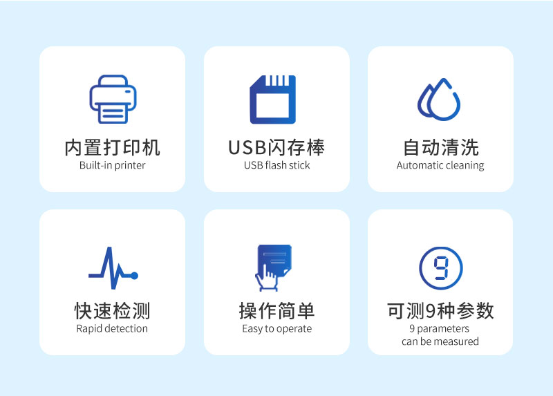 9、根據客戶要求選擇-電導率,內置打印機,USB閃存棒,第二蠕動泵自動清洗,PH值。